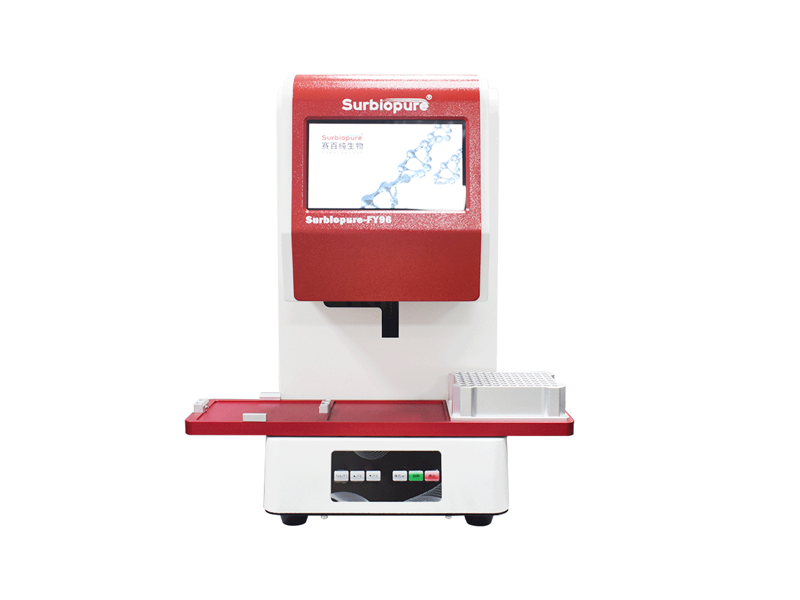 Surbiopure-FY96是一款96通量全自动样品处理系统。采用7寸触摸屏进行人机互动,界面简洁清楚,交互符合操作习惯,容易上手。操作程序和步骤自定义设置,自动完成装退吸头、移液、放液等操作。移液模式包括基本移液、陆续在分液、梯度稀释等。