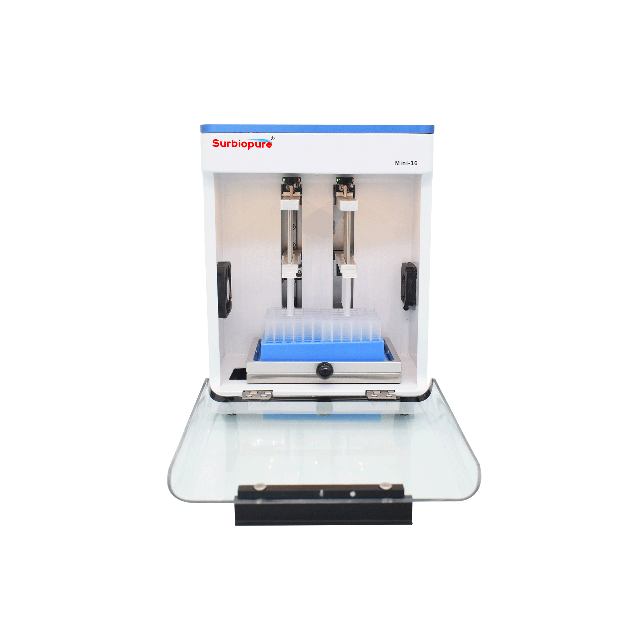 Mini-16全自动核酸提取仪采用磁珠分离技术,利用2.2ml深孔板、2.2ml试剂条、8联磁棒套;搭配不同种类的磁珠法核酸提取试剂盒,最多可一次同时操作1-16个样本,仪需9~45分钟就可快速提取样本中的DNA和RNA。 本系统通量灵活,可实现不同需求量的样品提取,使用范围广;每次可同时提取1-16个样品,配合单条试剂可实现1-8个样品的任意通量同时提取;搭载7寸彩色触控一体化操作界面,可自由编辑提取程序;配置负压排气系统和紫外灯消毒系统,避免气溶胶污染,安全可靠;尤其适合零散样本的现场核酸提取,配合实时荧光定量PCR系统,可轻松实现户外现场样本的即时检测。